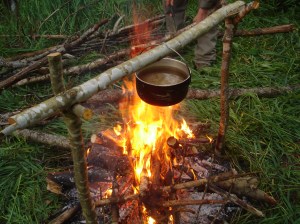 Nobraukuši vēl kādu gabaliņu, sasniedzām mazu ūdenskritumiņu, aiz kura pļaviņā arī ierīkojām nometni. Atlikušo vakara daļu pavadījām intelektualās sarunās par apkārtnes govīm, dzīves jēgu, Heidegera filozofiju un Higsa bozonu.