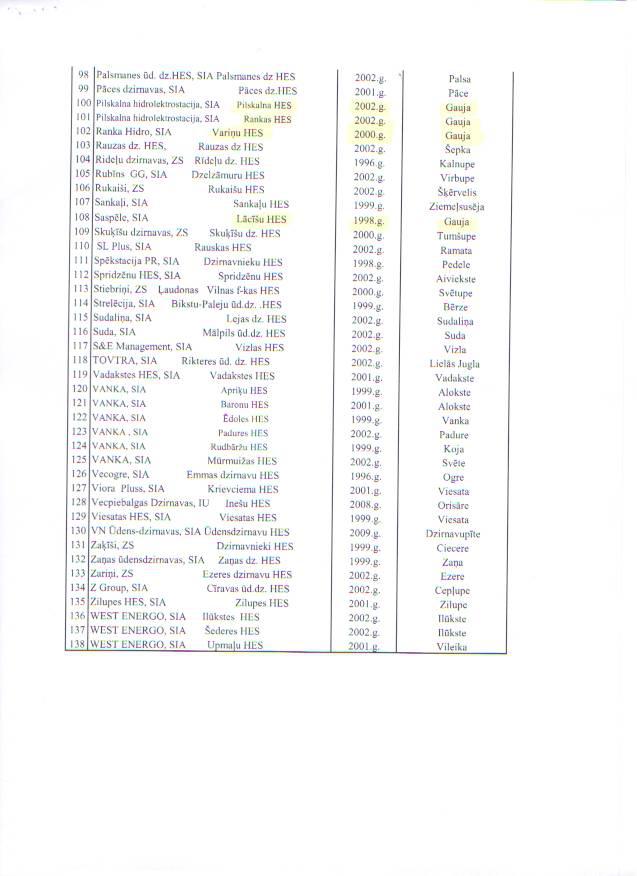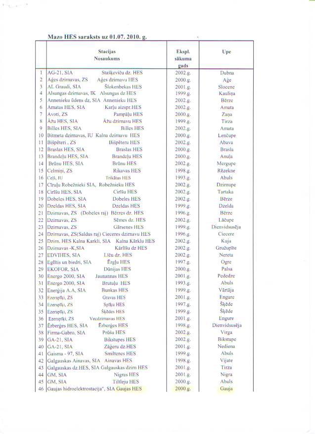 Latvijas mazo HES saraksts
